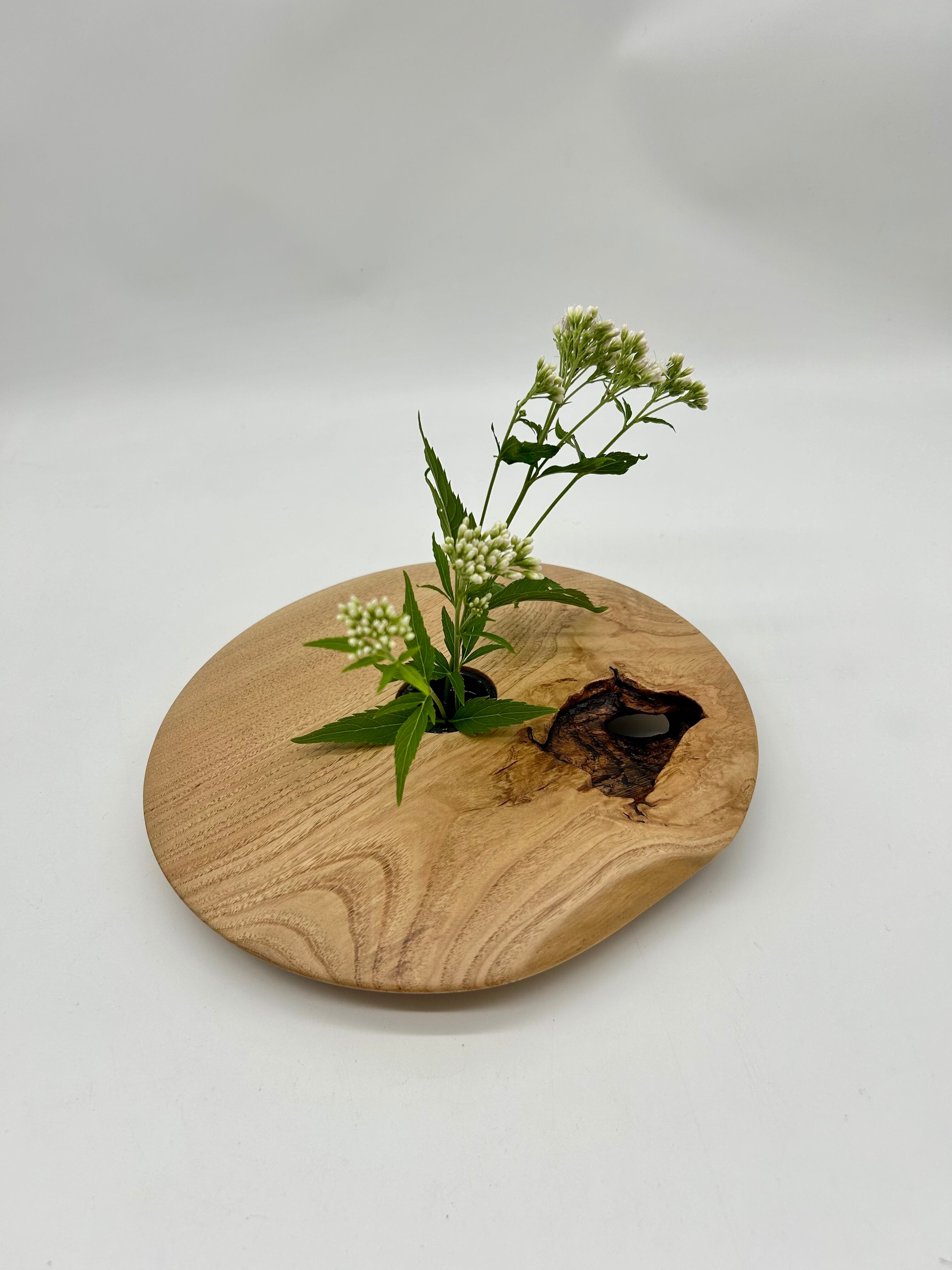 中央には小さな剣山を内蔵し、野の花や草花をそっと引き立てるデザイン。