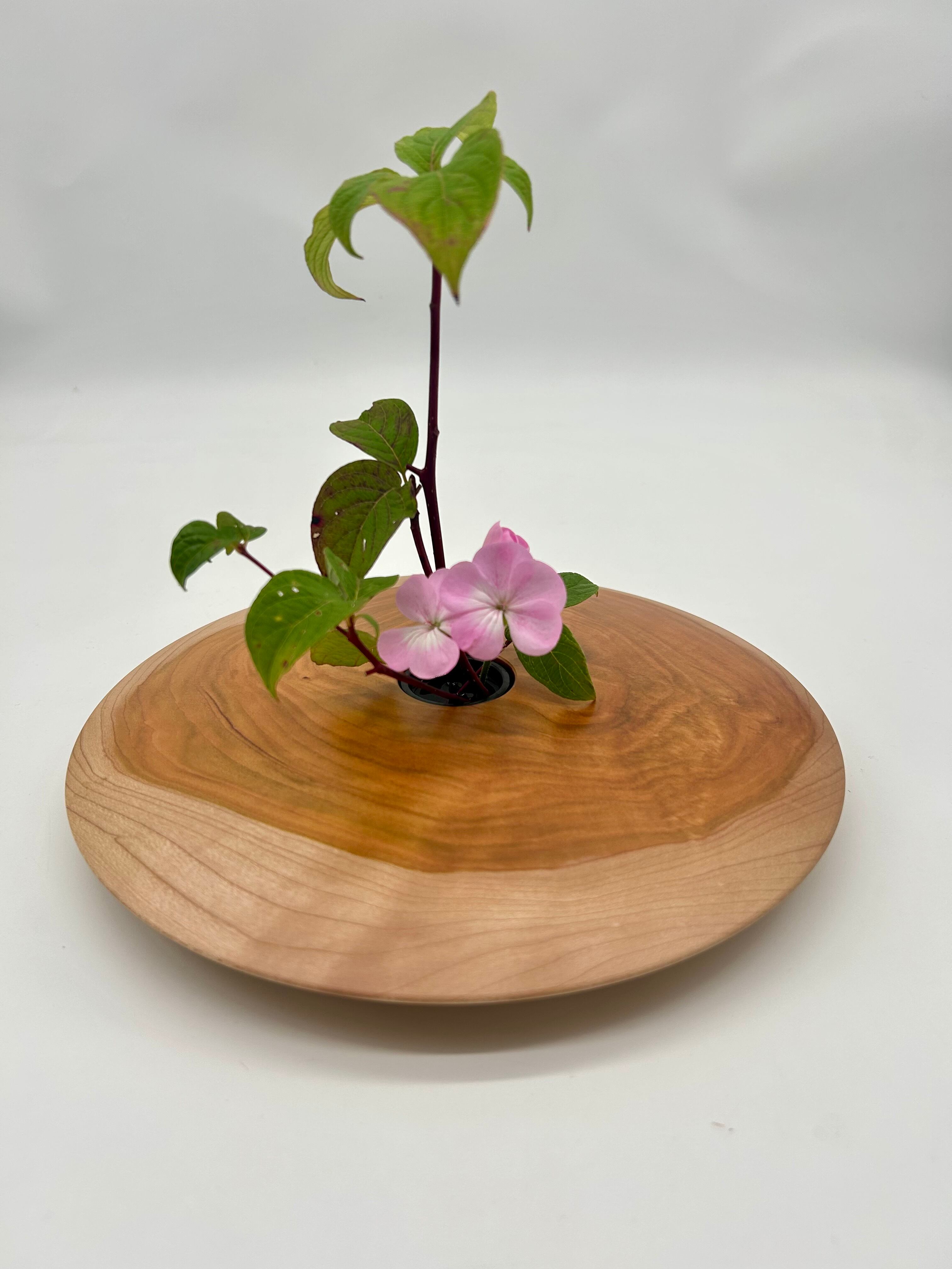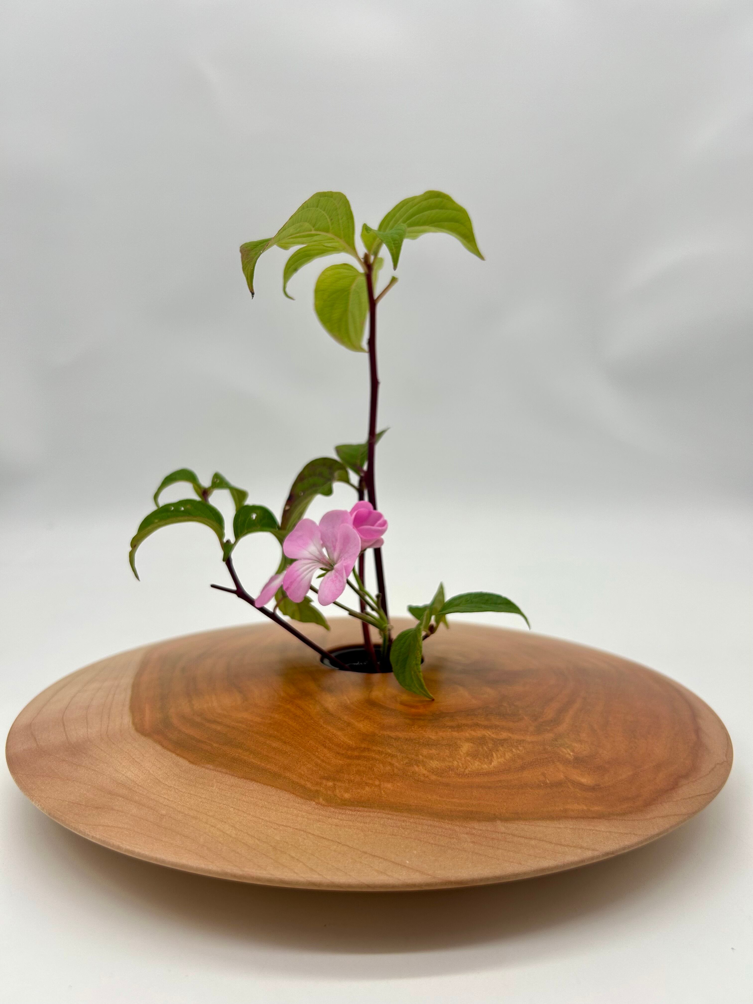桜の木で作られた「UFO花器」。