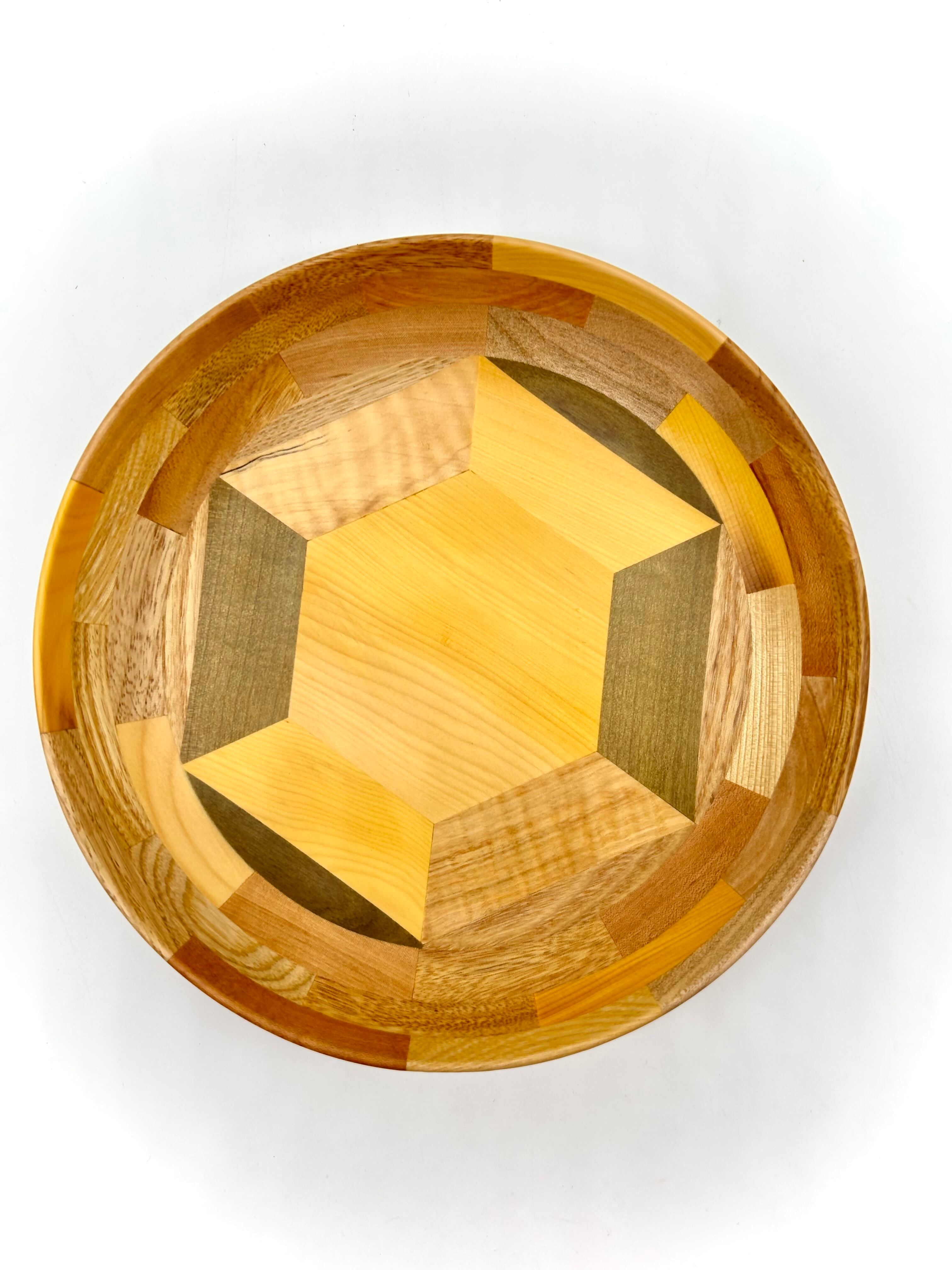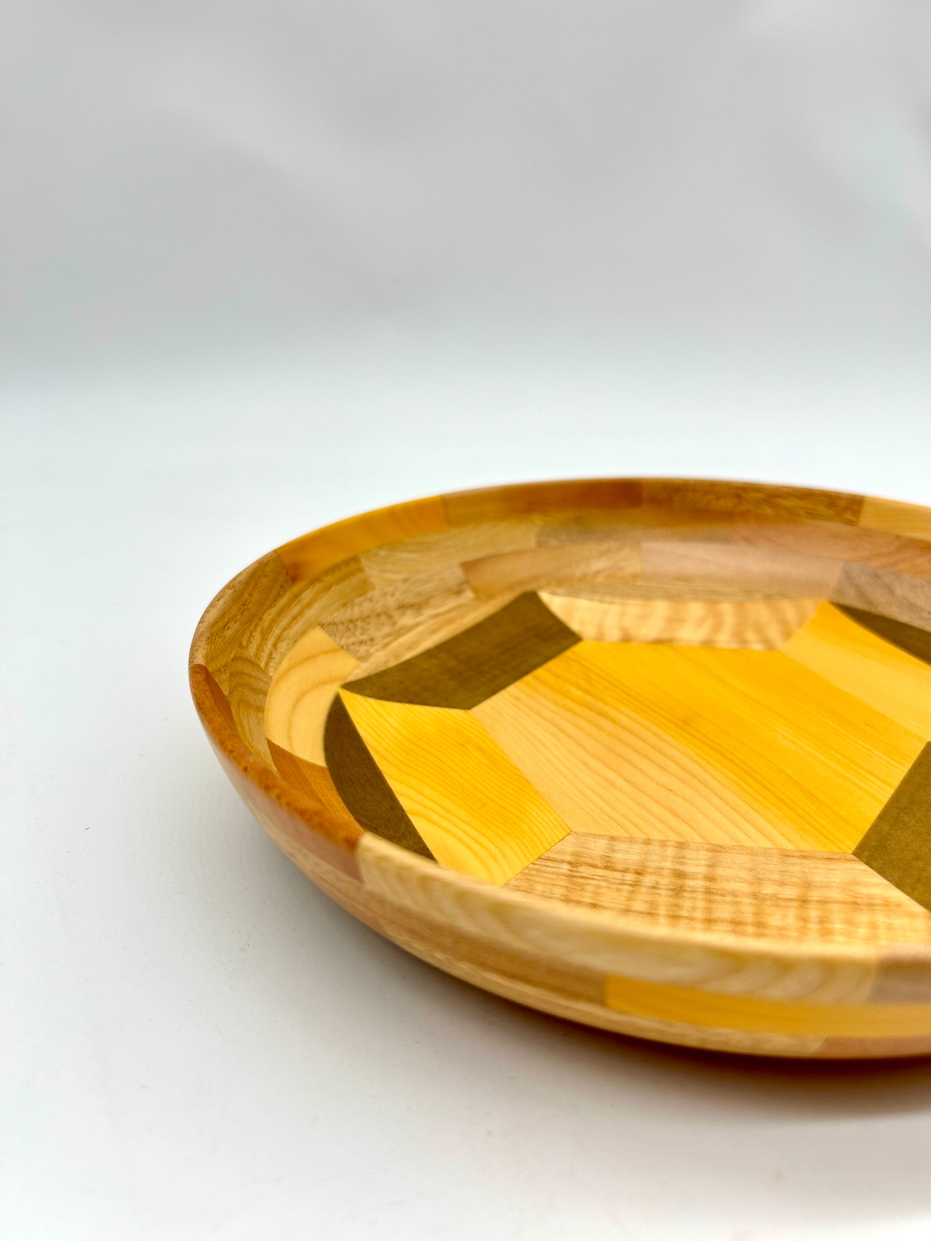 様々な種類の木の端材を組み合わせて作られた、色とりどりで可愛い木の器です。