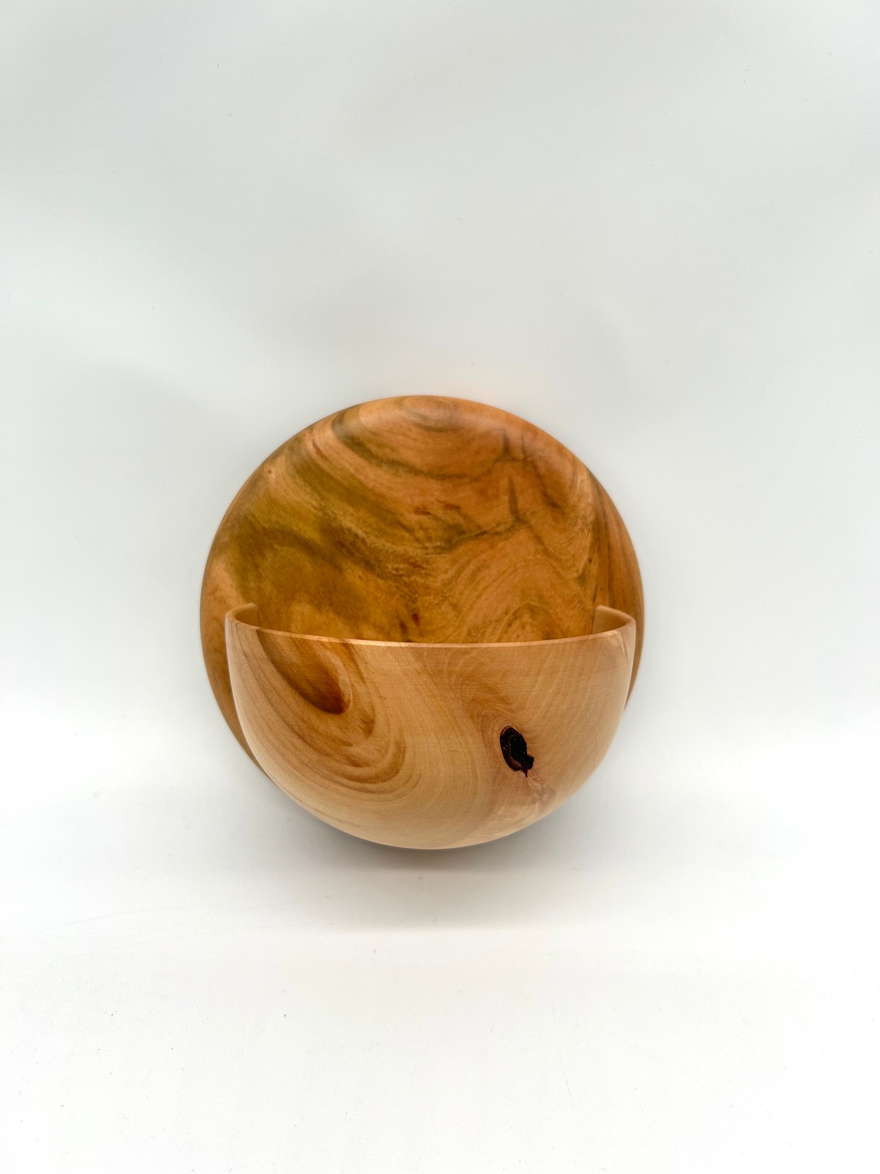 割れなどがあって商品化できなかった木の器をカットし、壁掛けポケットとして新たに生まれ変わらせました。