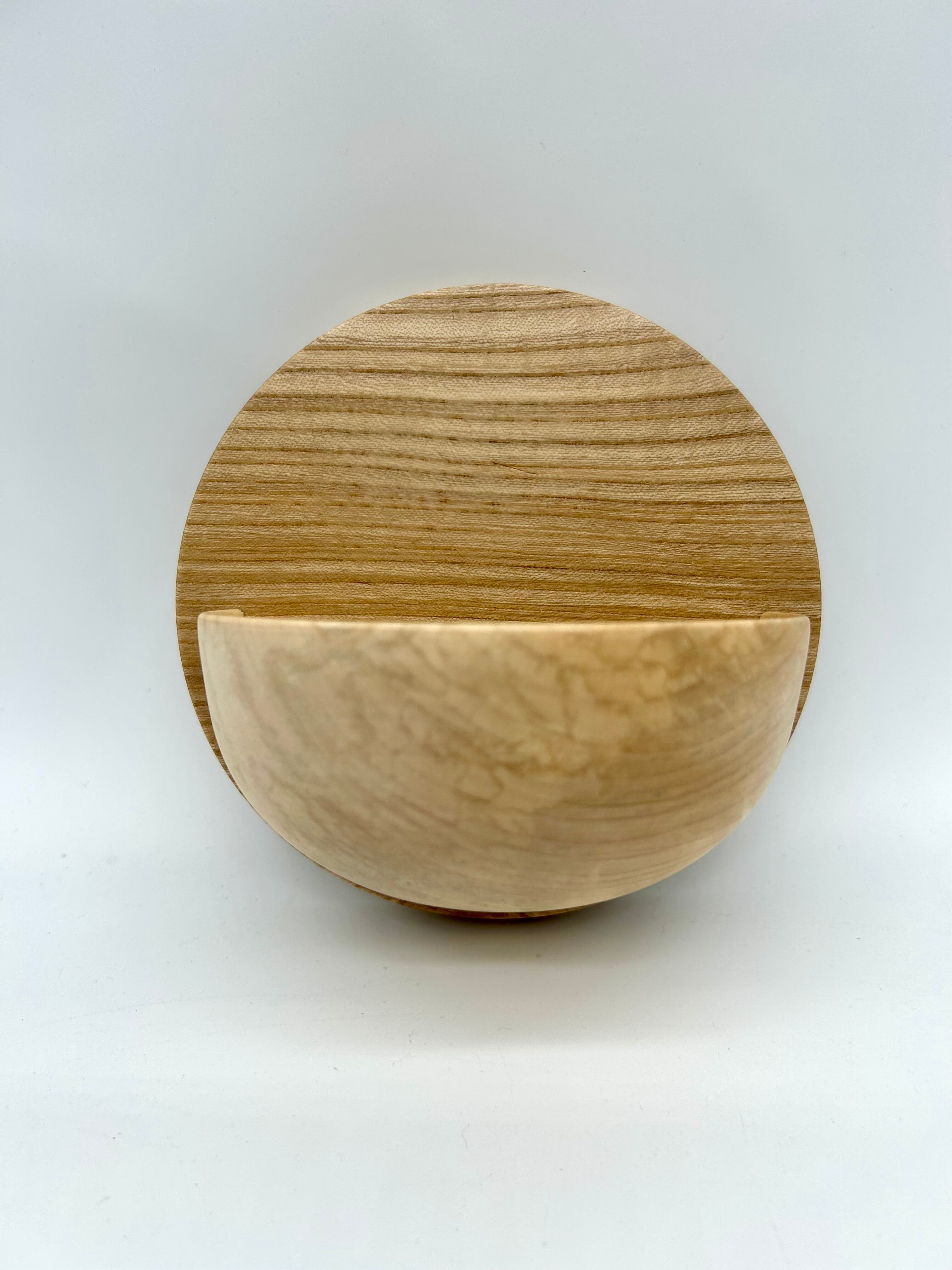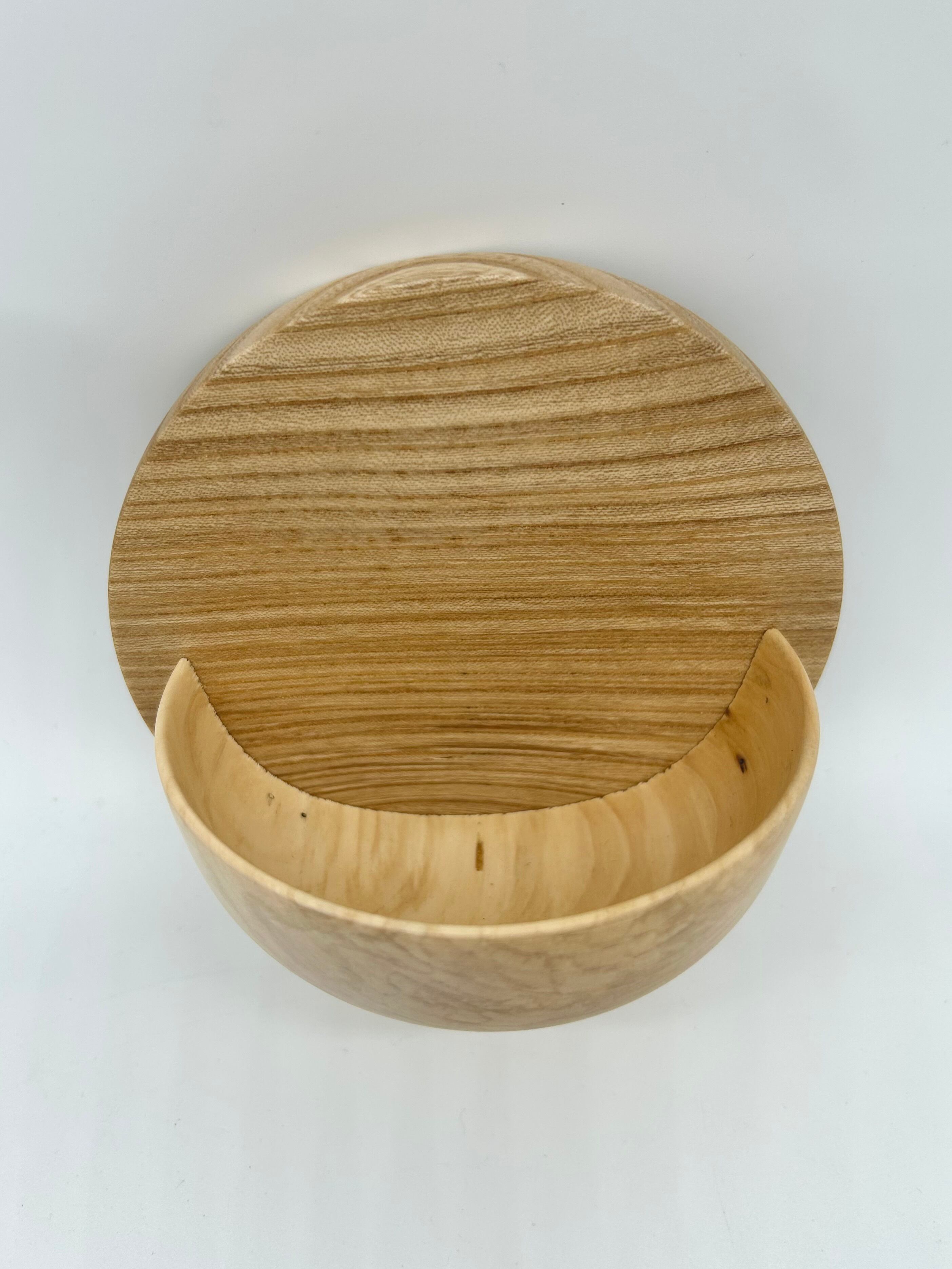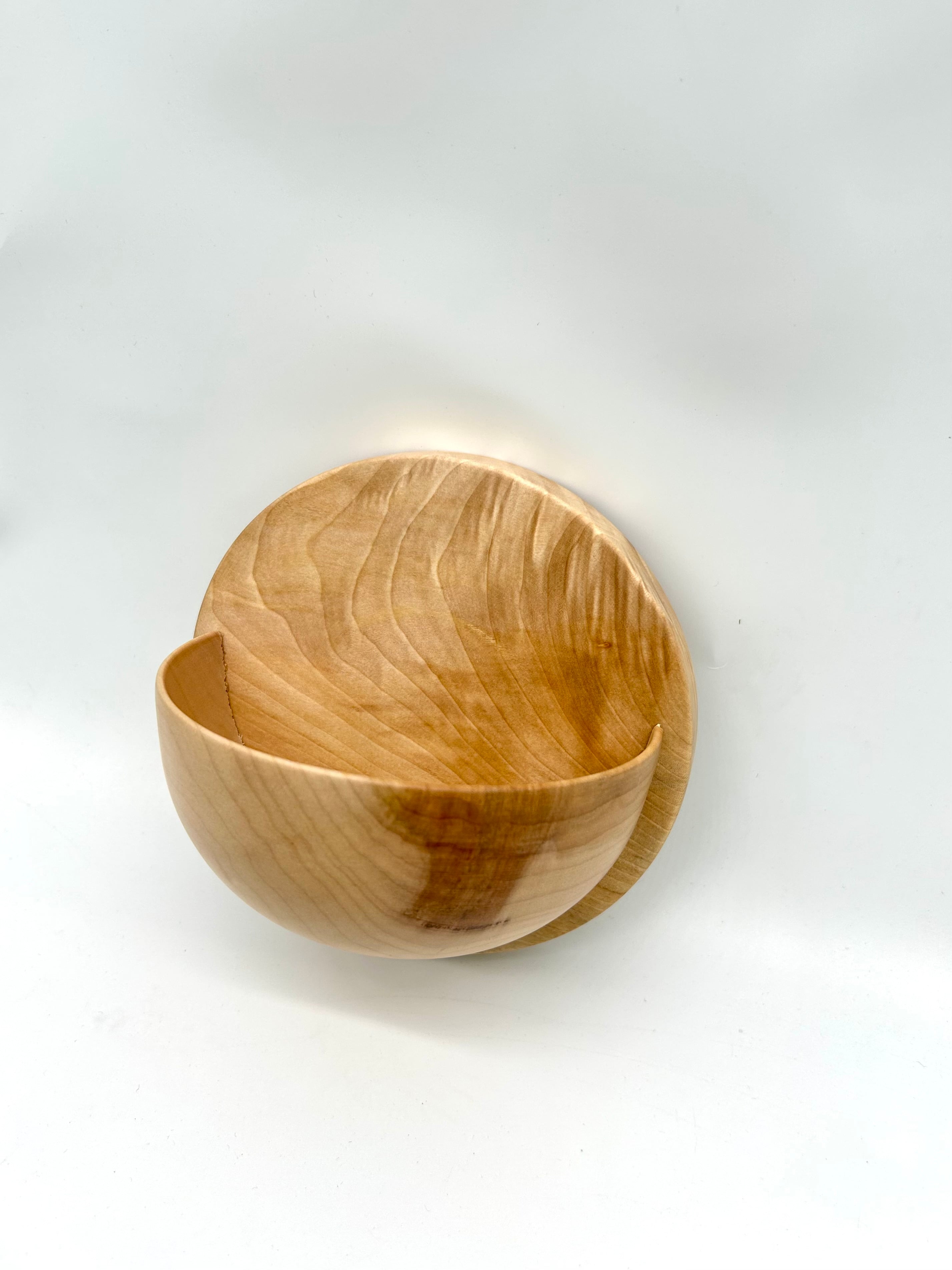 割れなどがあって商品化できなかった木の器をカットし、壁掛けポケットとして新たに生まれ変わらせました。