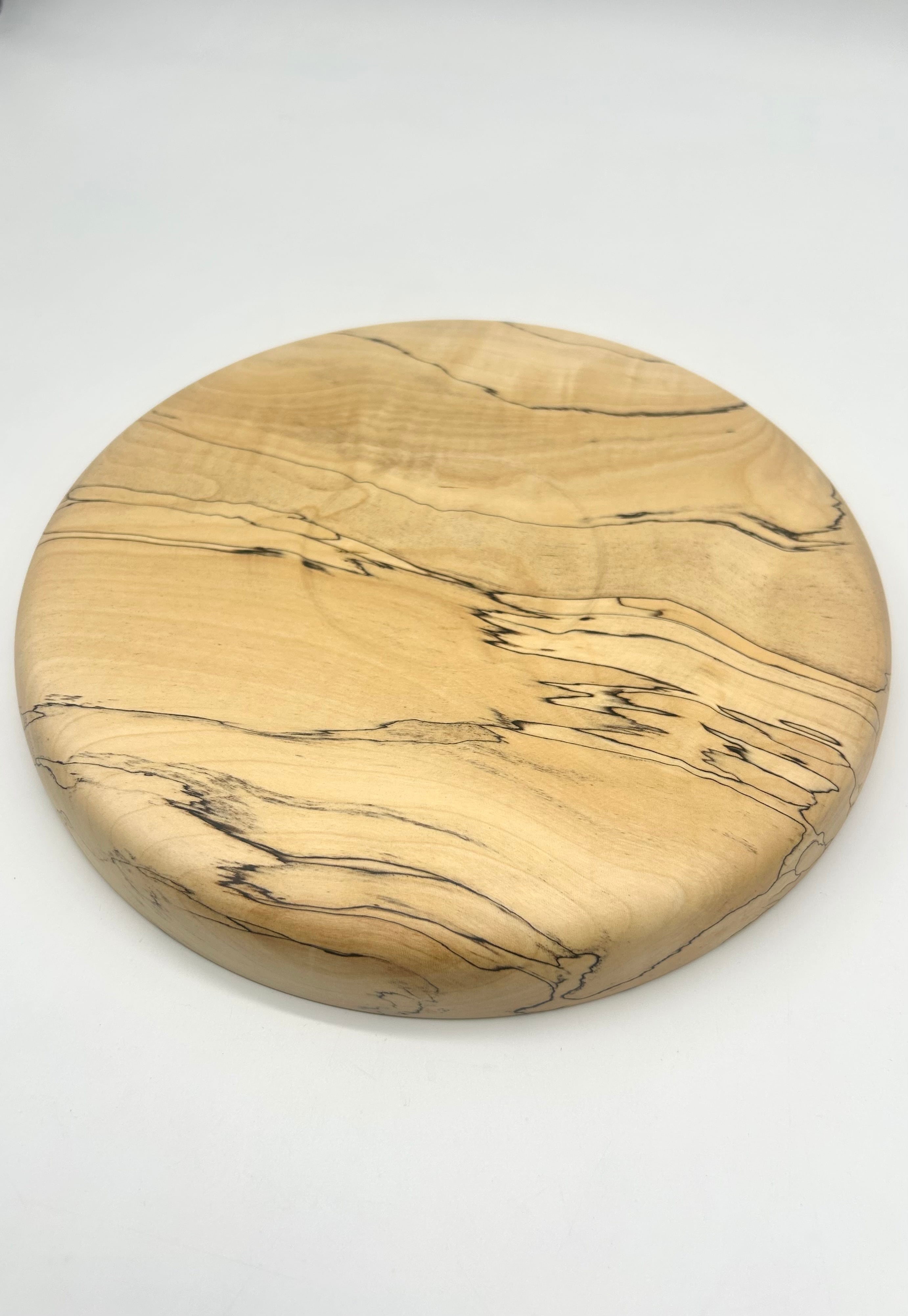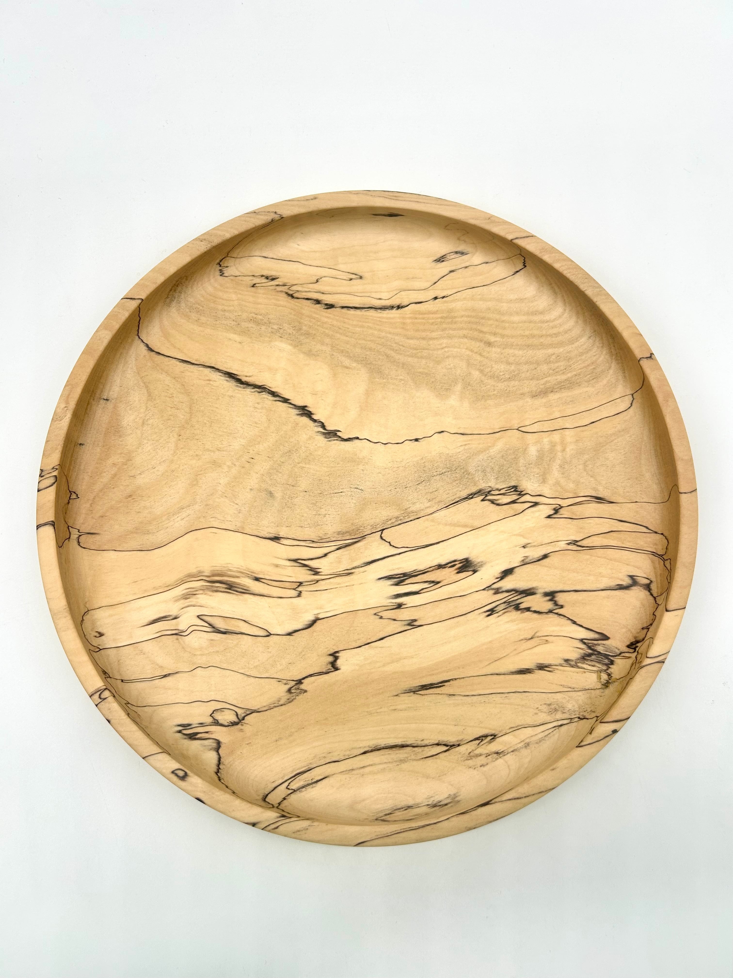 栃の木に自然にできた黒いライン模様(スポルテッド杢)がきれいに入った、一点物のお盆です。木がもともと持っている模様なので、同じものはひとつとしてありません。