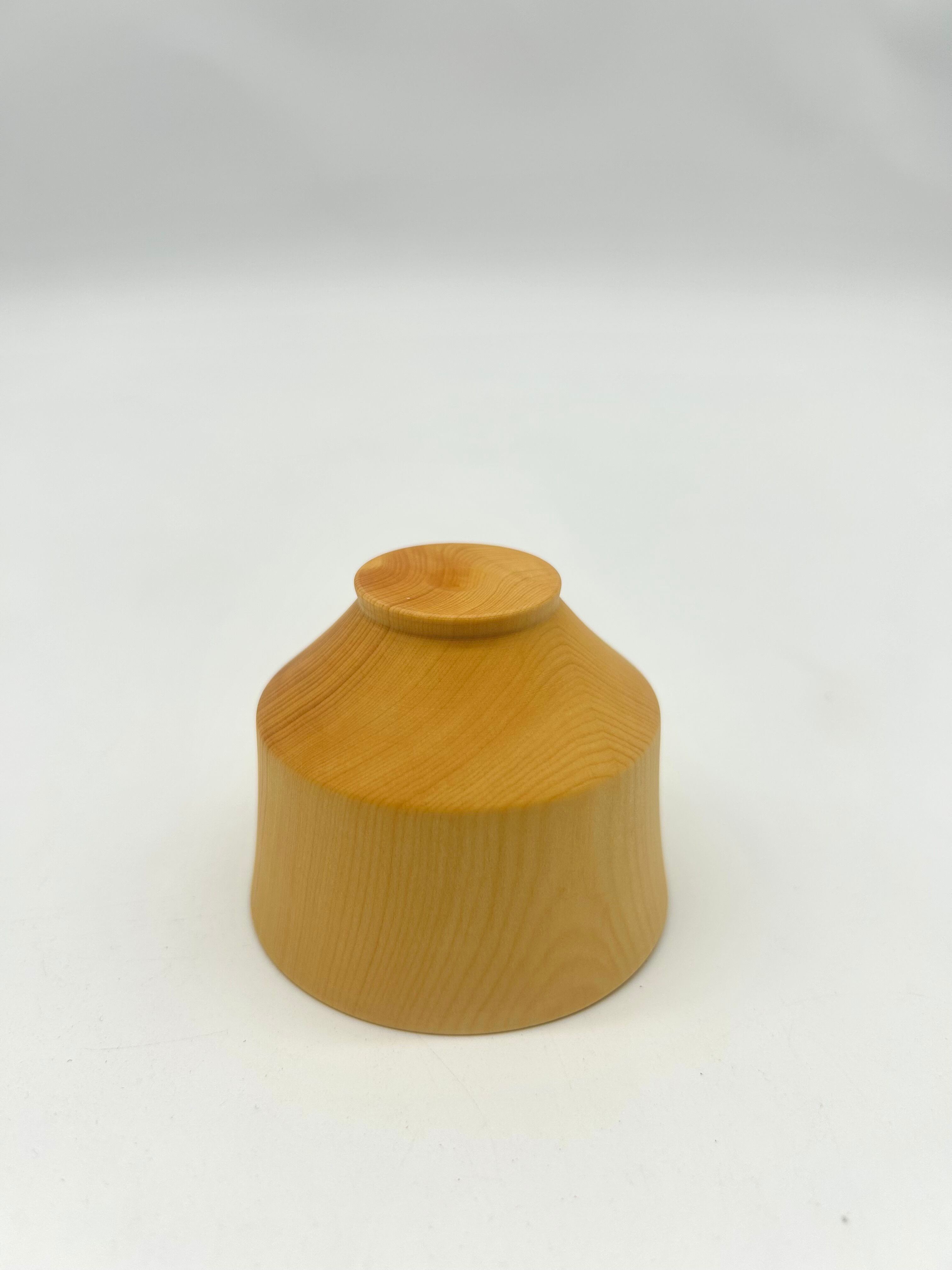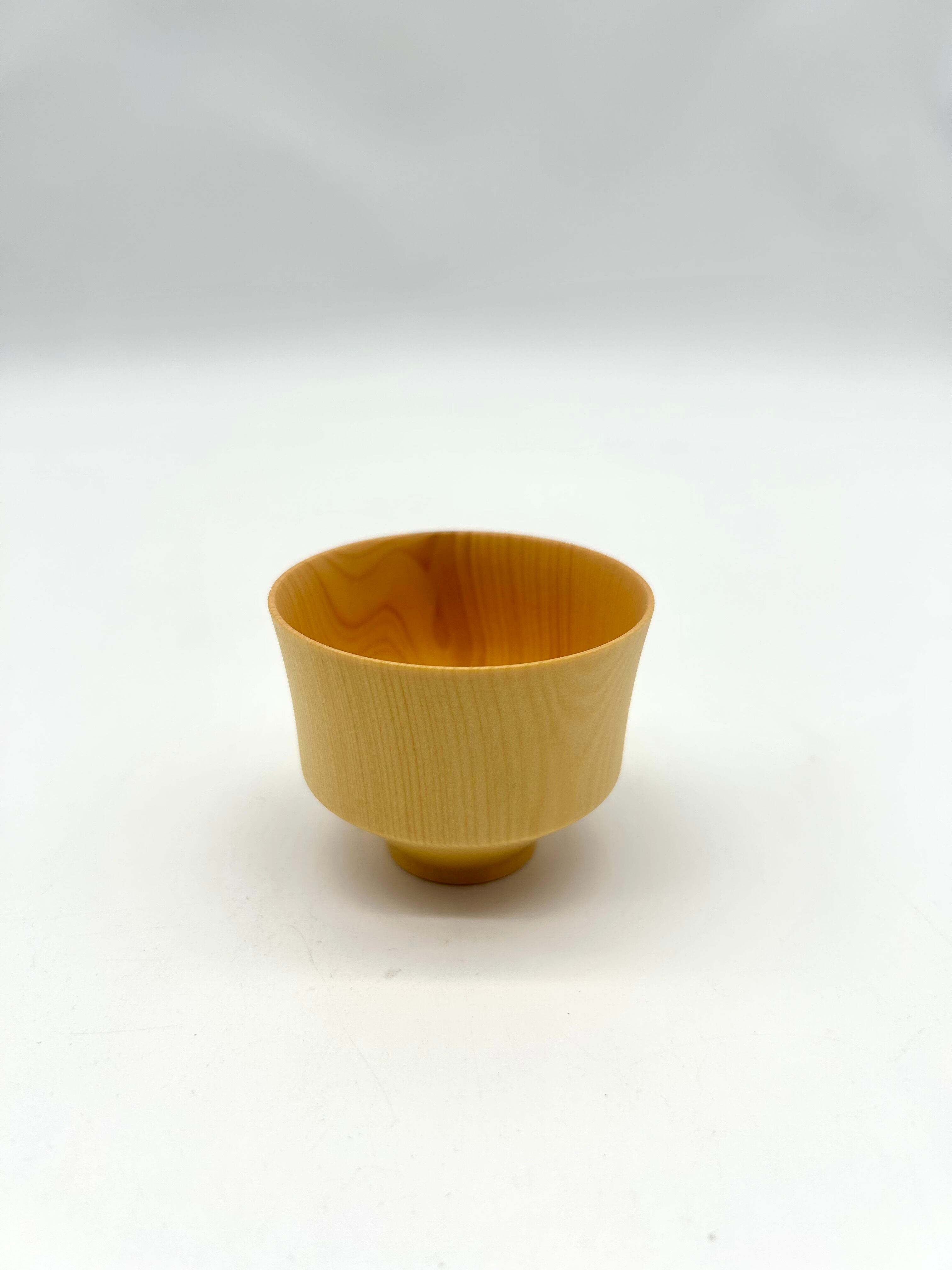 榧特有のやわらかな黄金色と、美しく流れる木目が魅力。手に取るとしっとりと馴染み、口縁のやさしいカーブが飲み心地を引き立てます。