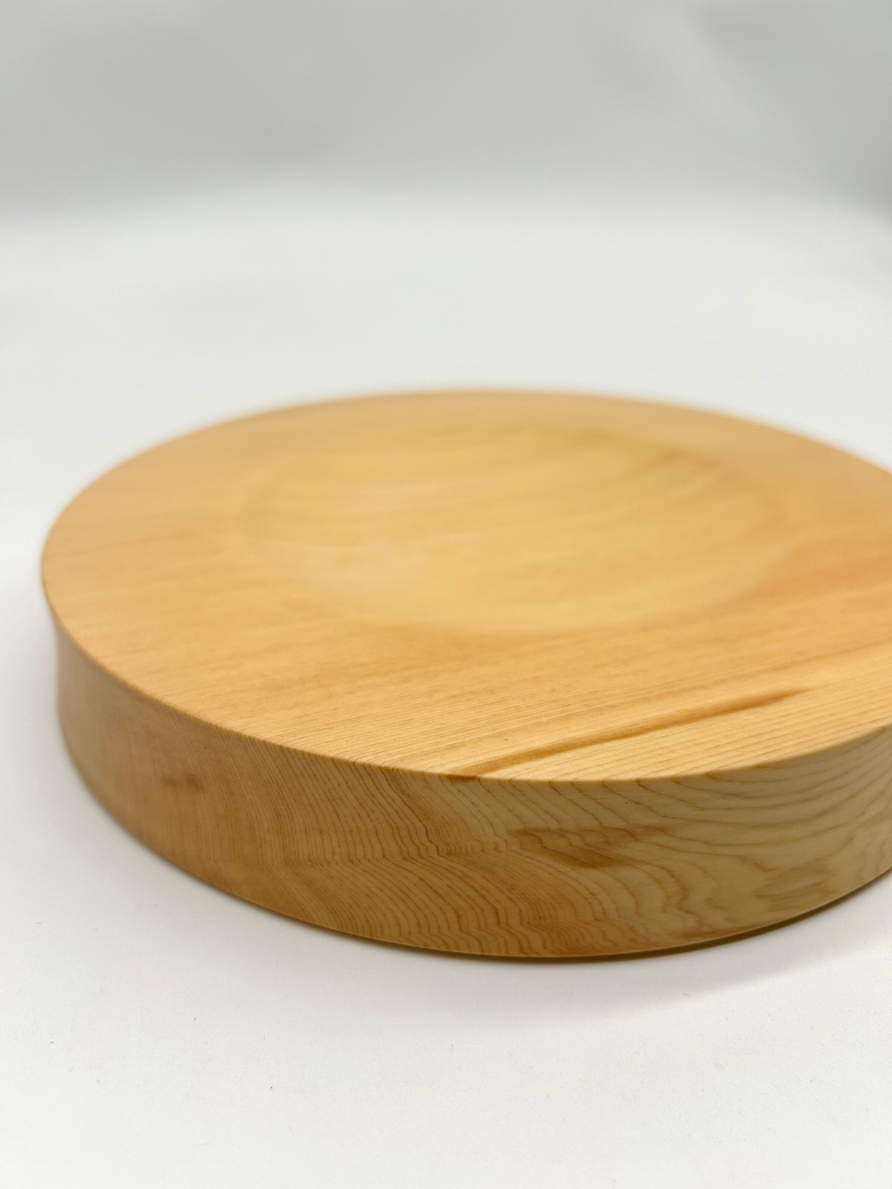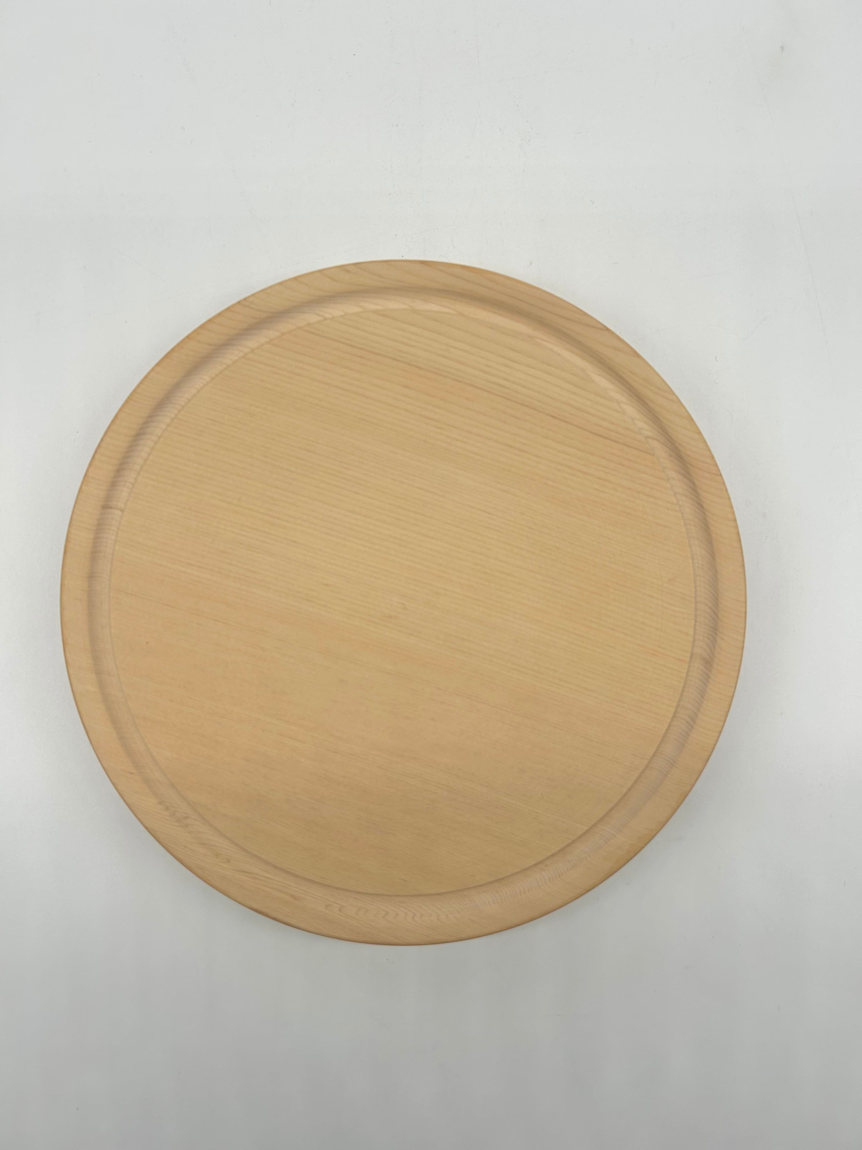 ヒノキの無垢材から削り出した、果物用のカットボードです。